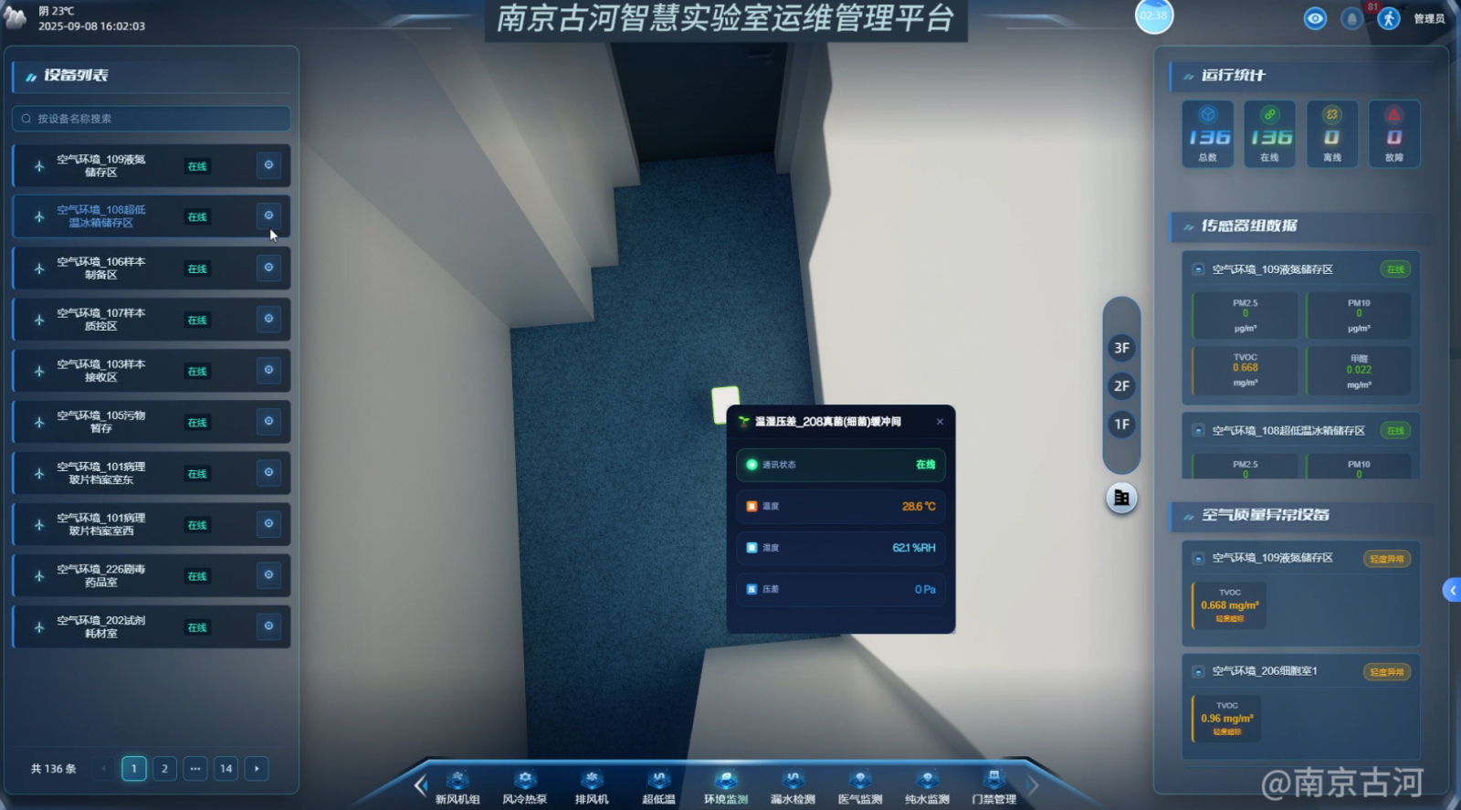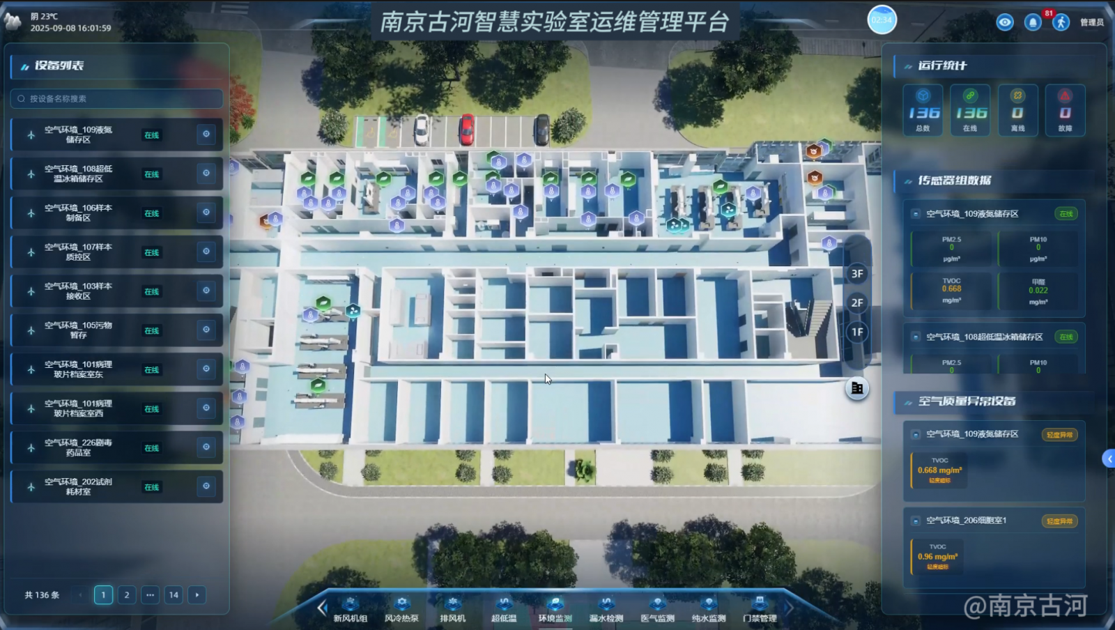 此模块构建了实验室环境的“数字孪生体”,实现对环境参数的全面感知、智能预警与数据溯源。