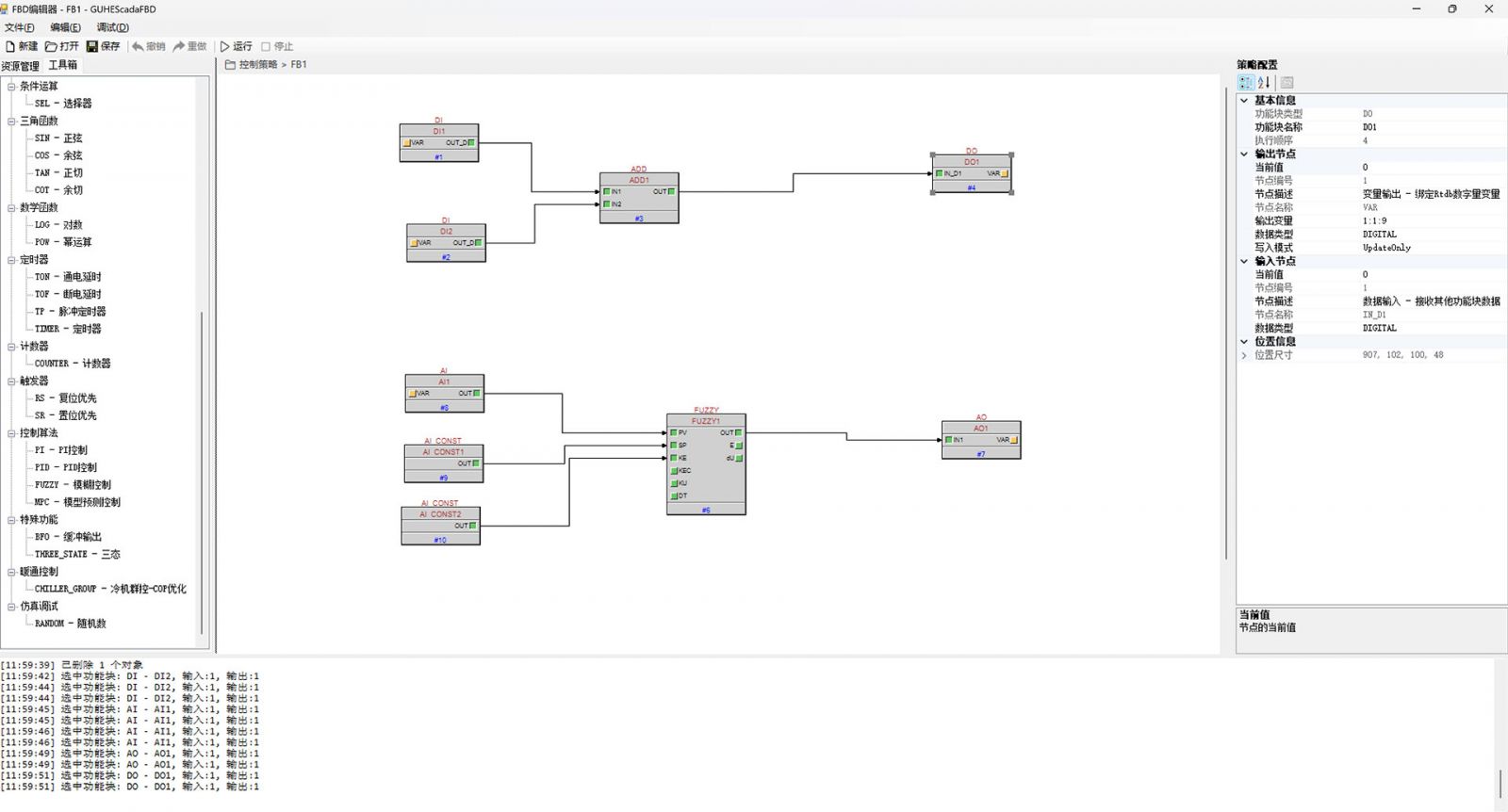 AND/OR/NOT 逻辑运算,到 TON/TOF 定时器,再到 RS/SR 触发器,古河网关提供了超过 40 种基础功能块,轻松应对现场的各种联锁、去抖和时序需求。这是古河网关真正的“杀手锏”。通常,模糊控制(Fuzzy Logic) 和 模型预测控制(MPC) 这种高级算法,只存在于昂贵的专用控制器或上位机软件中。古河将其封装为标准的 FBD 功能块,直接下沉到网关侧。