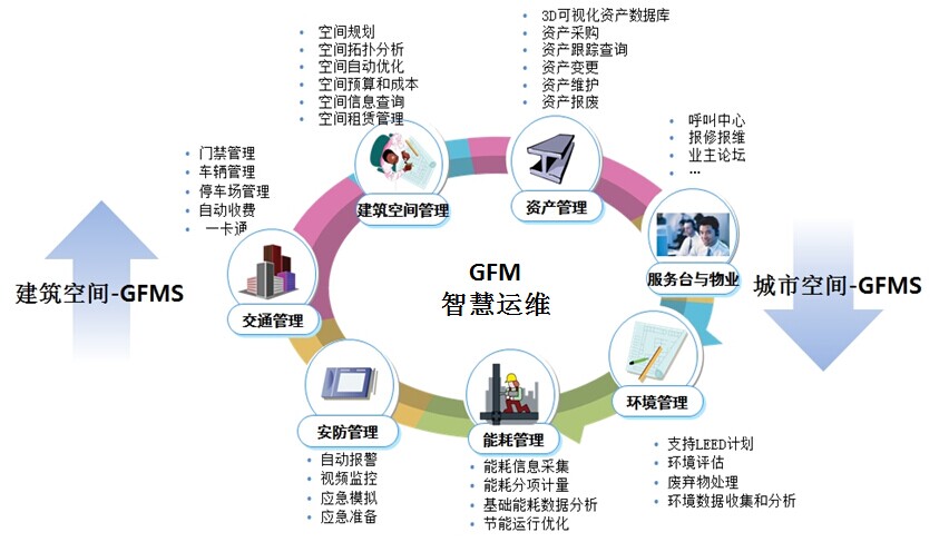 设施管理(FM)整体解决方案,关注建筑运维全生命周期的管理,有效管理所有不动产、工作场所及设施、设备;保证安全、降低运维成本、提高管理效率;为用户提供生活环境规划、整备、可持续的运维管理等服务;使固有资产保值增值。