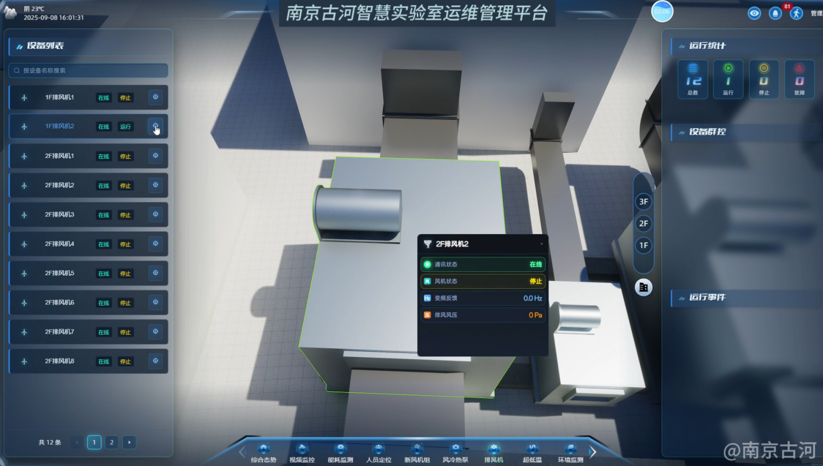 - 全局监控:集中监控各区域排风机的运行状态(频率、风压、故障/手自动状态)。