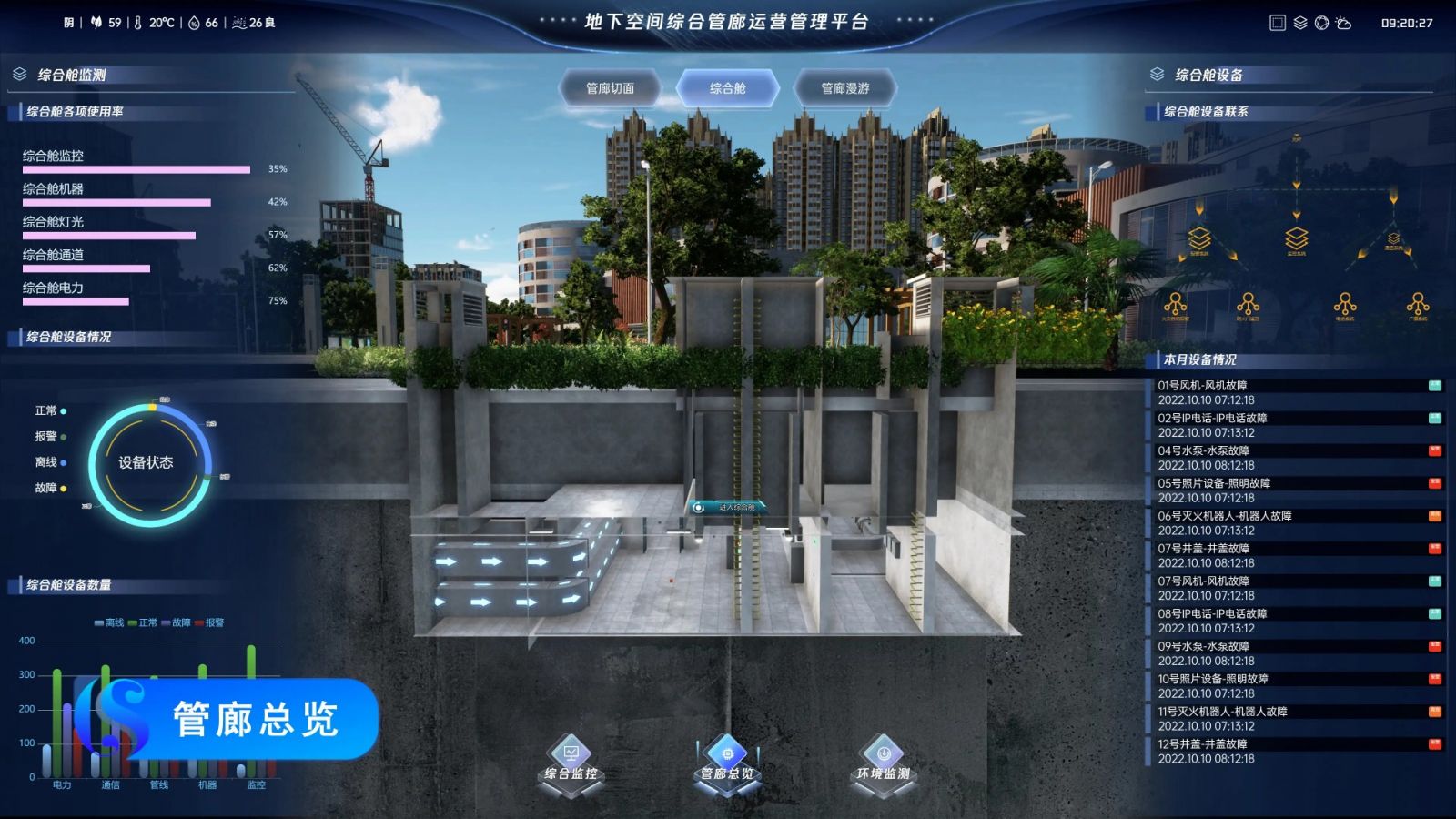 - 智能诊断与预测:基于大数据分析(如设备运行参数关联分析、环境变化趋势预测),输出管廊健康状态评估报告,为长期规划与改造提供数据支撑。